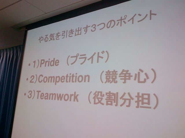 やる気を引き出す3つのポイントは、「プライド、競争心、役割分担」