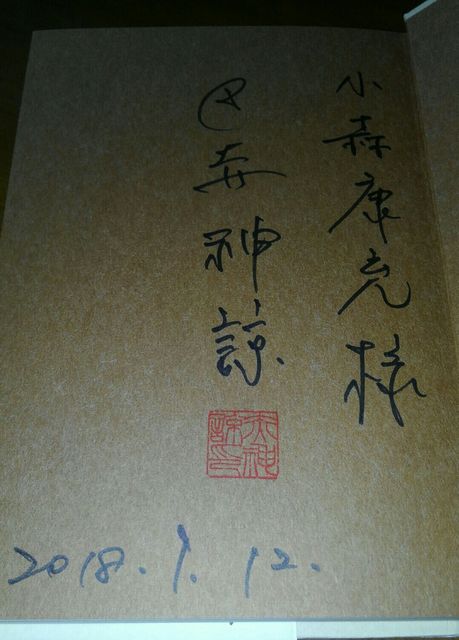 講演会前に「大友二階崩れ」(日本経済新聞出版社)を購入、先生のサイン。
