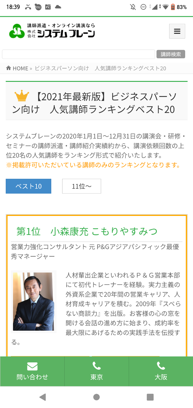 ¥·¥¹¥Æ¥à¥Ö¥ì¡¼¥ó¤Î2020ǯ1·î1Æü¡Á12·î31Æü¤Î¹Ö±é²ñ¡¦¸¦½¤¡¦¥»¥ß¥Ê¡¼¤Î¹Ö»ÕÇɸ¯¡¦¹Ö»Õ¾Ò²ð¼ÂÀÓ¤«¤é¡¢¹Ö±é°ÍÍê²ó¿ô¤Î¾å°Ì20̾¤Î¿Íµ¤¹Ö»Õ¤ò¥é¥ó¥¥ó¥°·Á¼°¤ÇÂ裱°Ì(¥Ó¥¸¥Í¥¹¥Ñ¡¼¥½¥ó¸þ¤±)¤Ç¾Ò²ð¤µ¤ì¤Þ¤·¤¿¡£¥·¥¹¥Æ¥à¥Ö¥ì¡¼¥ó¤Ï¹Ö±é¾Ò²ðÂç¼ê¤ÇÅÐÏ¿¹Ö»Õ1Ëü4Àé¿Í¤ÎÃæ¤Î¥é¥ó¥¥ó¥°¤Ç¤¹¡£